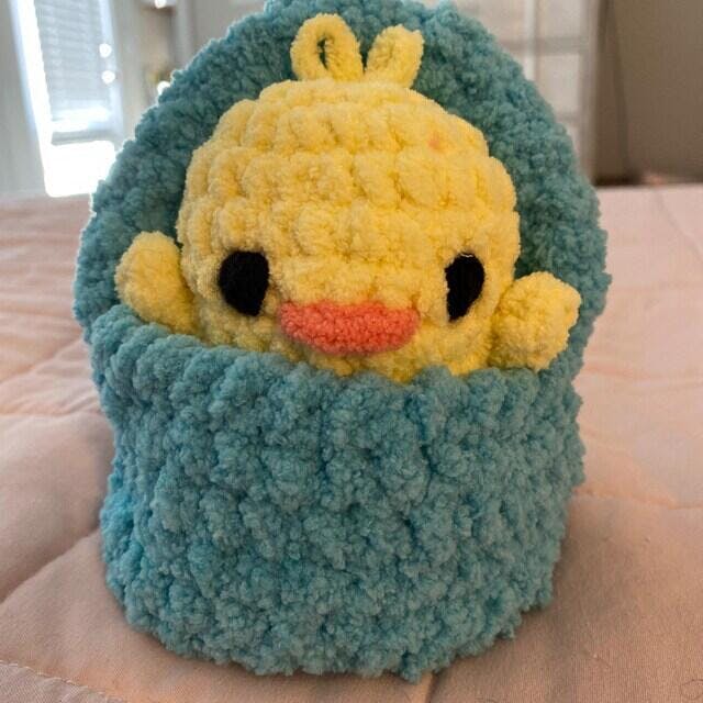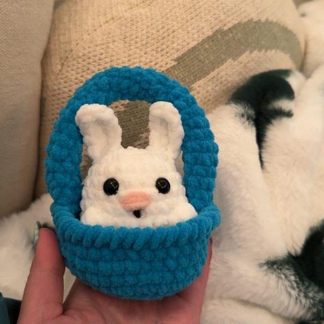 📏 Size: Using a 5 mm crochet hook and Plush yarn, the finished Chick and Bunny will be about 9.5 cm (3.75 in) long. The basket's diameter is 10.5 cm (4 in), and its depth is 5 cm (2 in). The handle can be customized to any length.